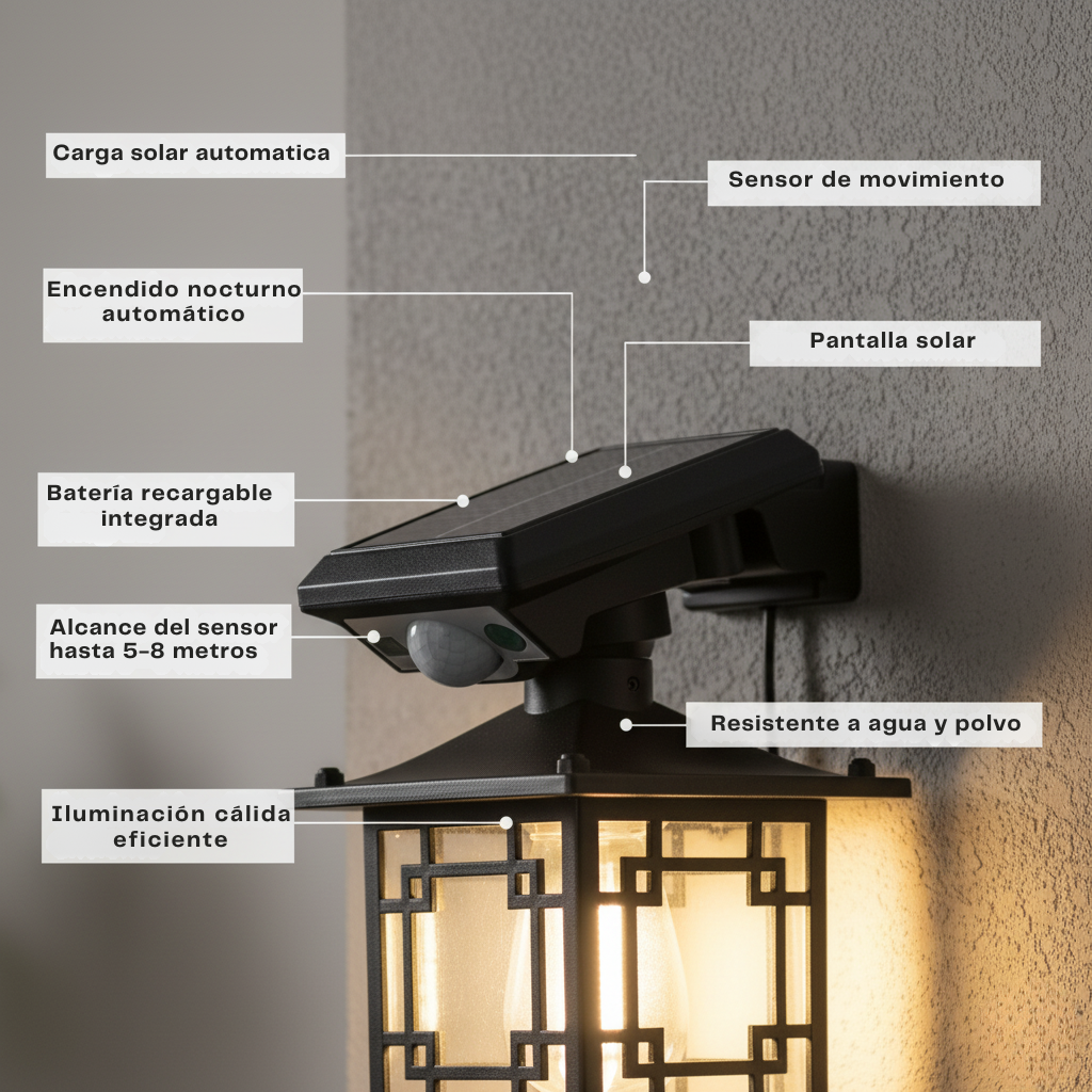 El Farol Home Solar de Livius fue diseñado para brindarte seguridad, comodidad y ahorro en un solo producto. Con su sensor detector de movimiento, se activa automáticamente al detectar presencia, iluminando al instante cualquier espacio exterior como entradas, patios, garajes o pasillos.