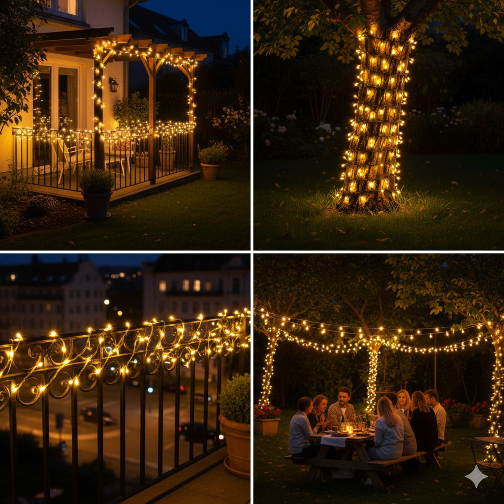La Guirnalda Lumina Solar de Livius combina elegancia, practicidad y sustentabilidad para transformar cualquier espacio exterior en un ambiente mágico. Con 100 luces LED distribuidas a lo largo de 20 metros, ofrece una iluminación cálida, uniforme y envolvente, ideal para terrazas, balcones, jardines o eventos especiales.